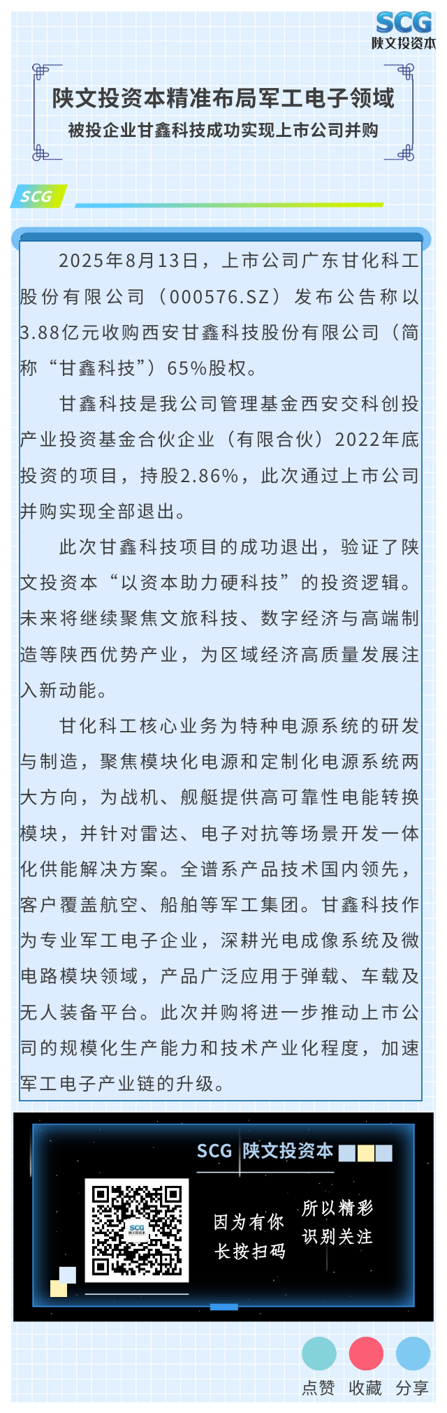 陜文投資本精準布局軍工電子領(lǐng)域,被投企業(yè)甘鑫科技成功實現(xiàn)上市公司并購
